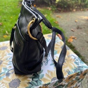 Fossil Crossbody Bag Purse Black Leather Gold Hardware
