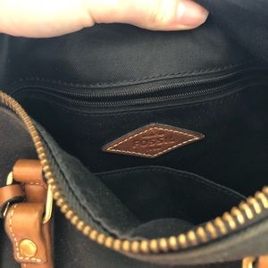 Medium size black canvas and leather Fossil bag