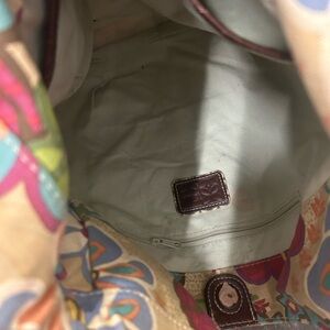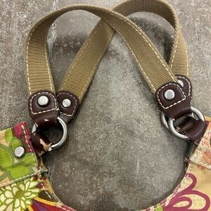 This Fossil tote bag features a vibrant floral design on durable canvas. Perfect for adding a pop of color to any outfit, it combines style and functionality effortlessly.
