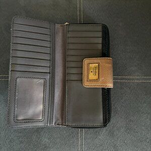 Fossil Issue No. 1954 Black and Gold leather Zip Wallet