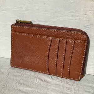 Fossil Jori Zip Card Case Leather Medium Brown Pebbled Leather NWT