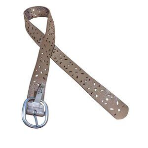 Fossil Leather Belt Size Small Flower Cut Out Gold Metallic