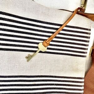 Hardware is in a very light brass colour and it is embossed with the Fossil Logo