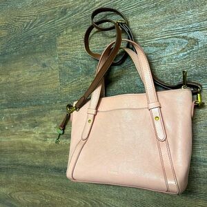 Fossil Pink Leather Tote Bag- EUC 2 straps smaller size