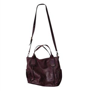 Fossil Purse Emerson Satchel Burgundy Leather Tote Hand Bag Lots of Compartments