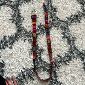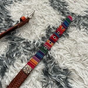 Fossil colorful belt with genuine leather and silver accents. Very bohemian, cowgirl, western inspired.