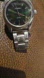 This is a gorgeous silver link FOSSIL watch with a dark green face.