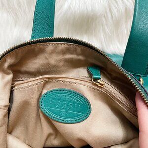 Fossil Teal Blue Green Fanny Leather Convertible Foldover Crossbody Purse Bag