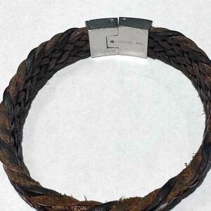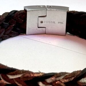 🧩 Fossil Tri-Colour Braided Leather Bracelet – Edgy & Effortlessly Cool 🖤✨