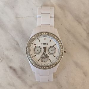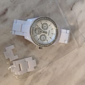 White Fossil watch with diamond embellishment. Only worn a handful of times. Comes with links to size it. Works perfectly but needs a new battery