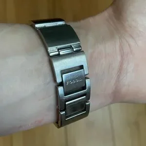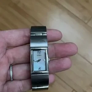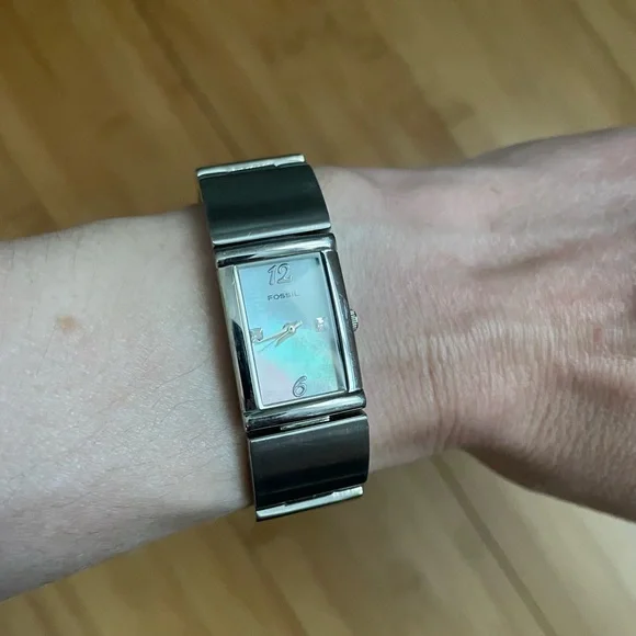 Fossil Watch - pearl-esque face. Some minor scratches (see photos) on band. No extensions. Needs new battery.