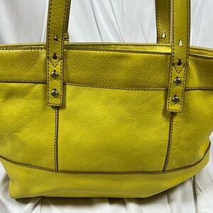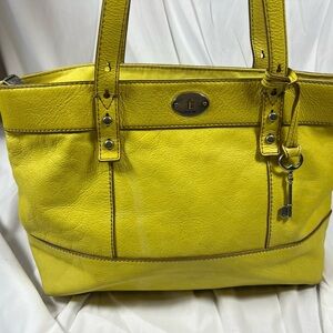 This vibrant yellow tote from Fossil is crafted from high-quality leather, offering a sleek and structured design. Its spacious interior and durable handles make it perfect for everyday use, while the gold-toned hardware adds a touch of elegance.