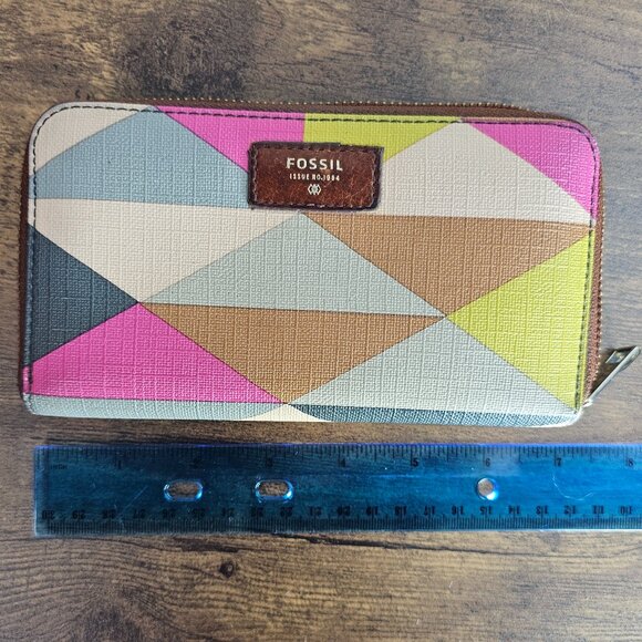 Fossil Zip Wallet Clutch - Colorblock Geometric Pattern