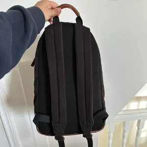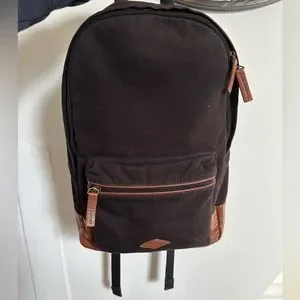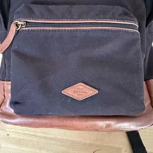 Black fossil backpack. Leather bottom. Fits 13” laptop, with a laptop pocket inside