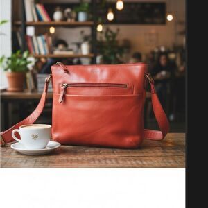 Fossil coral orange leather Vibrant Leather Crossbody Bag