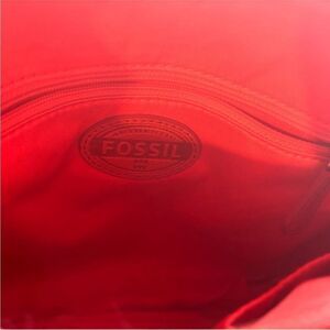 Chic Fossil bag in vibrant red leather. Features a sleek design with a front zipper.