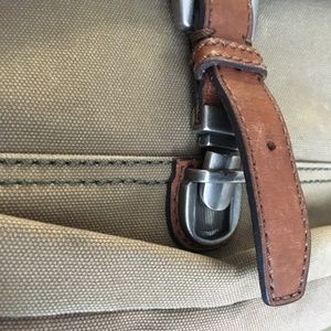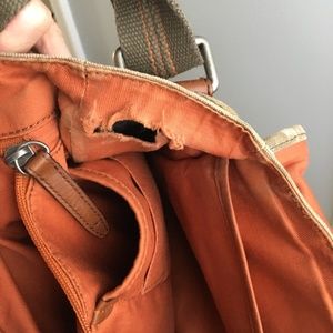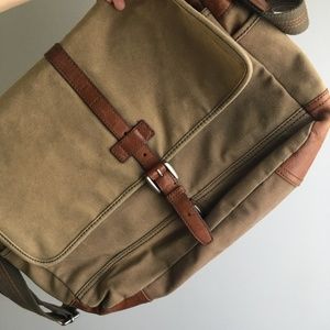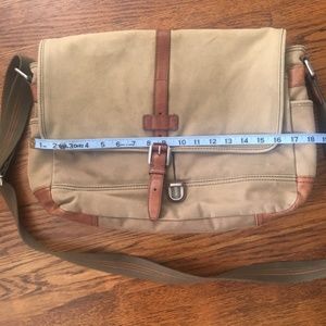 Fossil crossbody messenger bag, leather and canvas, please see photos on wear on inside of bag. Adjustable strap.