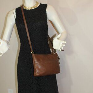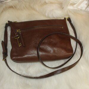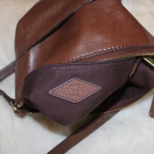 Fossil leather shoulder ,crossbody brown mini lined bag top zip 10" x 7.5"x 2"