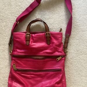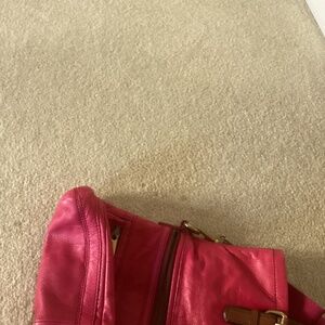Beautiful fuchsia pink leather purse / bag. Used rarely it’s a bit heavy, it has minor damage as shown in the pictures from storage, other than that it’s in perfect shape.
