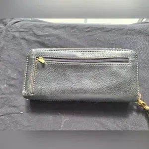 Beautiful black and gold leather wallet. Excellent used condition. Can be carried as a wristlet.