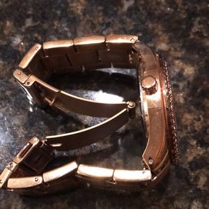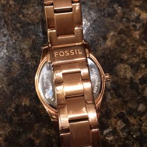 Very pretty rose gold Fossil watch with crystal round the face. Hardly worn. No box. Needs new battery.