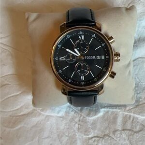 Black and gold fossil watch - leather band - barely worn