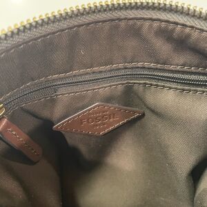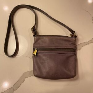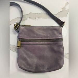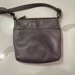Fossil Grey Leather Crossbody purse handbag Good Used condition with a few scuffs