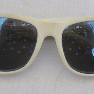 Foster Grant WUBBAS Sunglasses, white rubber frames, dark blue tint lens. Made in Taiwan. Some discolouration on frames due to wear.