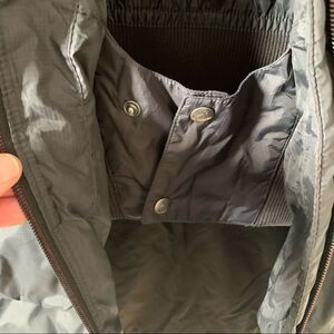 Beautifully constructed, extremely warm puffer coat with a faux fur trimmed hood. 2 pouch pockets that close with snaps.