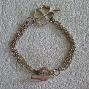 Lucky 4 leaf clover silver bracelet with toggle closure