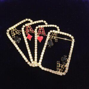 Four Aces Poker Hand Lucky Bling Rhinestone Brooch