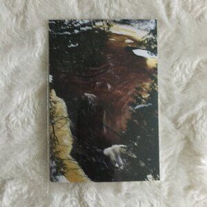 Very good preowned condition lot of four photographs of Canadian wilderness: icy river, still river light, still river dark, mossy bark.