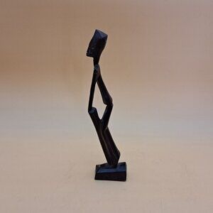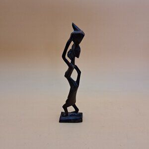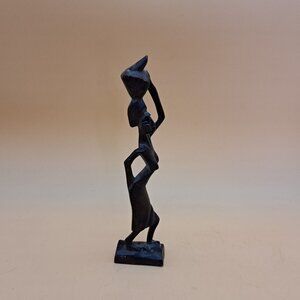A set of 4 wooden statues of African -possibly Caribbean- origin. One is a female figure carrying produce in a basket atop her head while the others are of men playing a type of drum. Please do check the pictures for wear and they appear to be hand carved.