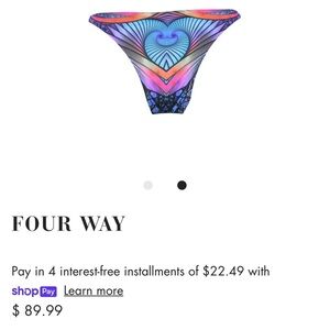 Four way was named by the multiple straps that can be ties in four ways. It flares across the body with straps and strips of brightly colored fabric.