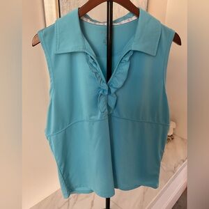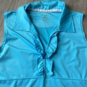 Foursome Performance Blue Collared Ruffled V-neck