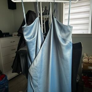Fourteenth Place Satin Feel Blue Slip Wrap Dress