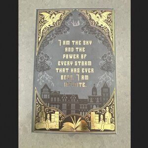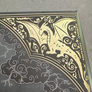 These editions will be the UK hardcover size and come with gold and copper foiling on the dust jacket and hardcover. Digitally printed edges and all three sides and custom endpapers, same design on the front and back. The reverse side to this dust jacket design is the standard UK hardcover dust jacket design.