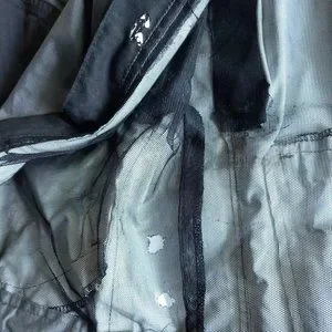Good condition, shows some use, only flaw is two small holes inside mesh lining, detailed in last photo.