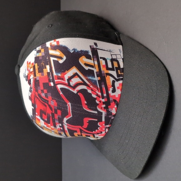 Unique Black with Multicolor front design and red FOX logo on back.