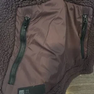 Stylish purple jacket with soft lining. Features a secure zipper closure.