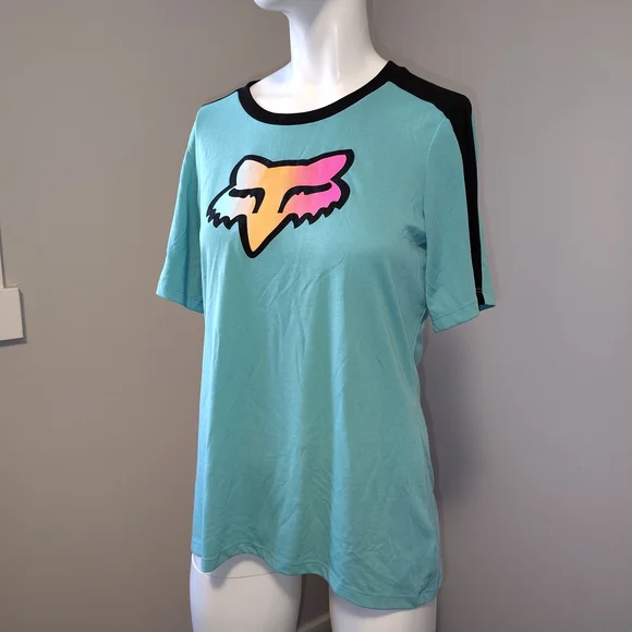 Fox racing technical shirt. bold colors in great condition. blue bin