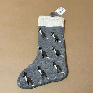 Grey Drake General Store fox Christmas knit stocking.