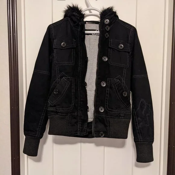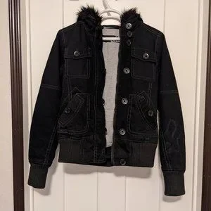 Black winter jacket with black fur trim. Looks like new only worn a few times.
