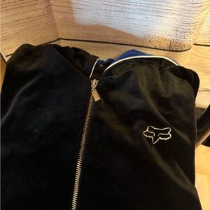 Fox 🦊 velour Y2K zip hoodie in black and blue colourway. This piece is a rare find and in impeccable condition!