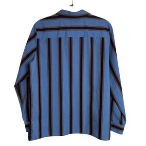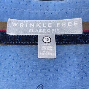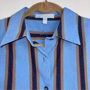 Foxcroft Women’s 12 Blue Striped Shirt Button Front Raised Print Long Sleeve