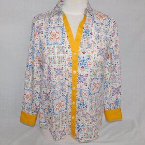 Foxcroft Womens 6 Alexis Watercolor Mosaic Multicolor No Iron Button Shirt