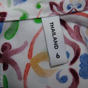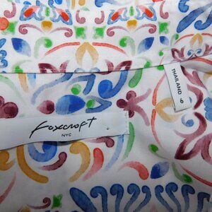 This stunning Womens 6 Foxcroft NYC Alexis Watercolor Mosaic Multicolor Flip Cuff No Iron Button Front Shirt is in Excellent clean bright condition. Shirt is 100% Cotton - Machine washable. Features open V neck - buttons start 6" Down From Collar.