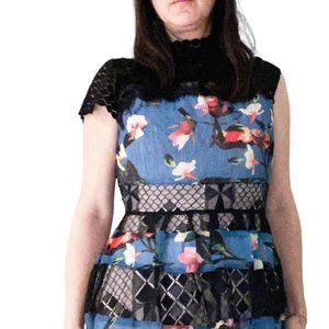 Foxiedox Lace and Print Detail Midi Dress - Sweetwater Print (S)