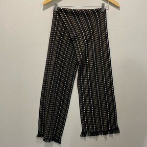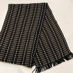 Men’s Black, Brown, White patterned Weaved Scarf with fringe