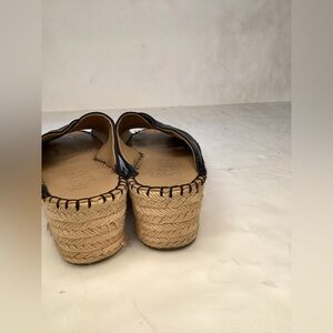 Espadrilles with soft leather uppers and man made base. These sandals are in good condition but have some wear around the sides. See pics